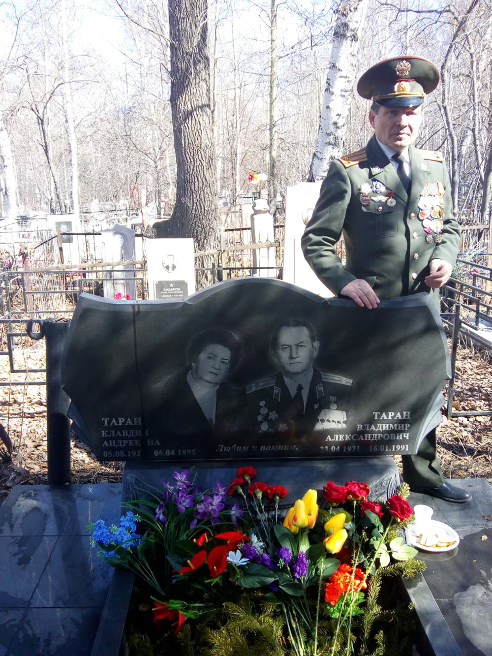 Александр Валентинович Кузаков у могилы Владимира Александровича Тарана и его супруги Клавдии Андреевны